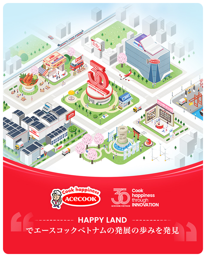 エースコックベトナムは、お客様、パートナー企業、社会、そして全従業員と共に幸福を築く旅路において、信頼されるパートナーであることを誇りに思っています。日本の最新技術と国際基準の品質管理プロセスをもって、私たちは毎日数千万食近くの、おいしくて便利、安全で栄養価の高い食事を提供し、すべての家庭に完全な信頼をお届けすることで、ベトナムの即席食品メーカーのリーディングカンパニーとしての地位を確立しています。