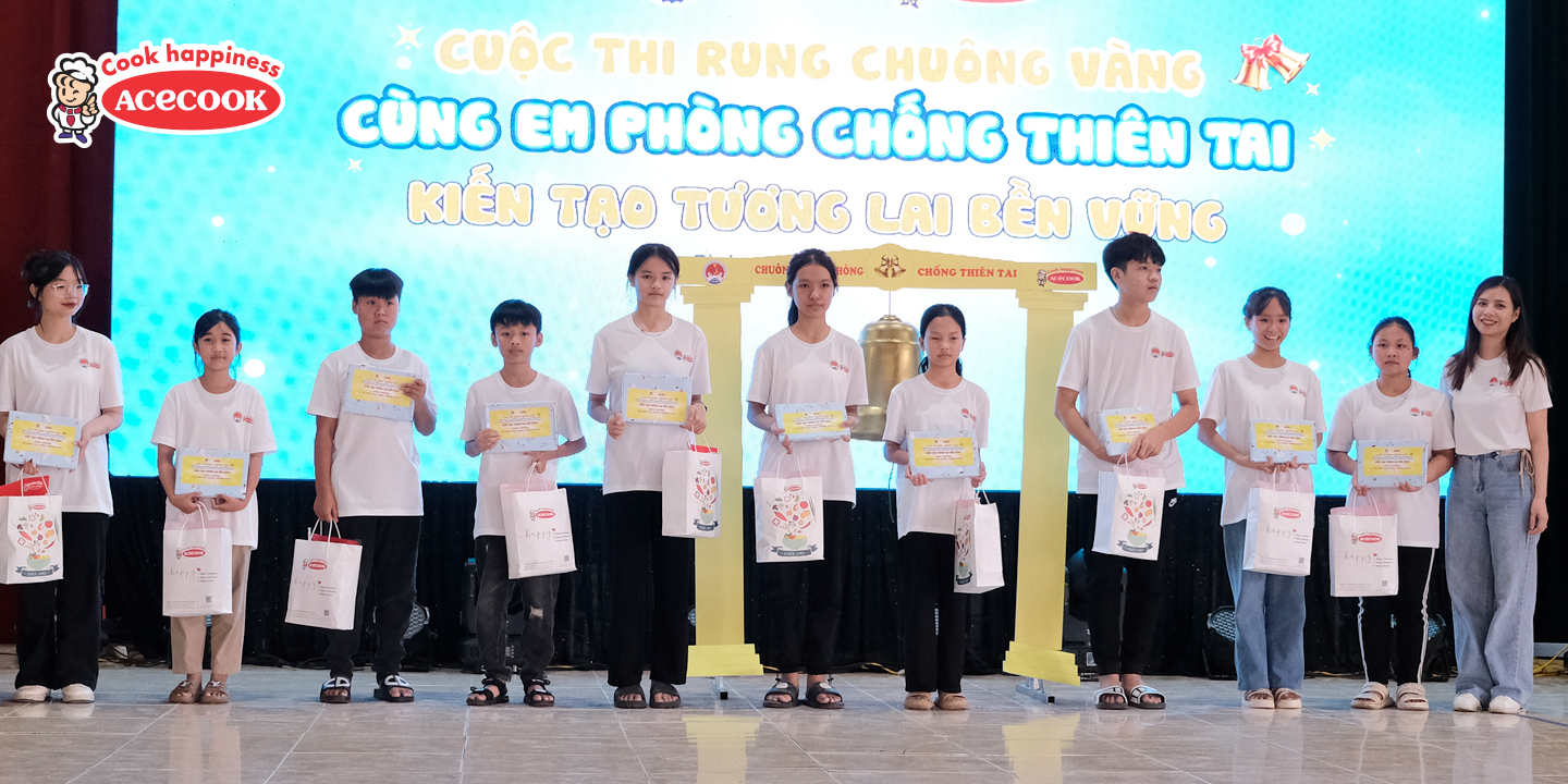 決勝大会で、エースコックベトナム株式会社外部関係部長のファム・チュン・タン氏は、「ゴールドベルを鳴らせ~子どもたちと一緒に防災、持続可能な未来を築こう~」コンテストは非常に有意義なプログラムであり、災害対策についての知識を深めるだけでなく、家族や親しい人々の命を守り、災害発生時のリスクや損害の軽減に貢献するものです、と強調しました。今年、この活動にエースコックベトナムが協賛するのは2回目で、5月にはクアンナム省ダイロック郡でも開催されました。また、今回のイベントでは、エースコックベトナム株式会社が同社の代表的な商品を詰めた540個のギフトバッグを生徒や来賓に贈呈しました。