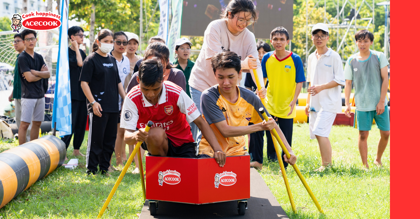 第5回School Festにおいて、エースコックベトナムはスポンサーとしてだけでなく、ゲームやインタラクティブな活動、魅力的なプレゼントを通じて学生たちの仲間となりました。これにより、学生たちが参加し、互いに絆を深める機会を創出しました。イベント内の「Fun5」アクティビティシリーズを通じて、絆の精神や身体の鍛錬といった高い教育的価値を持つ、忘れられない思い出が作られました。
