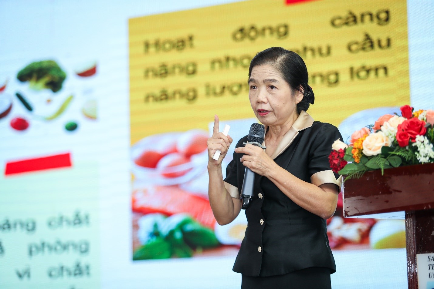 PGS.TS.BS Lê Bạch Mai, nguyên Phó viện trưởng Viện Dinh dưỡng Quốc gia chia sẻ với sinh viên các kiến thức về dinh dưỡng
