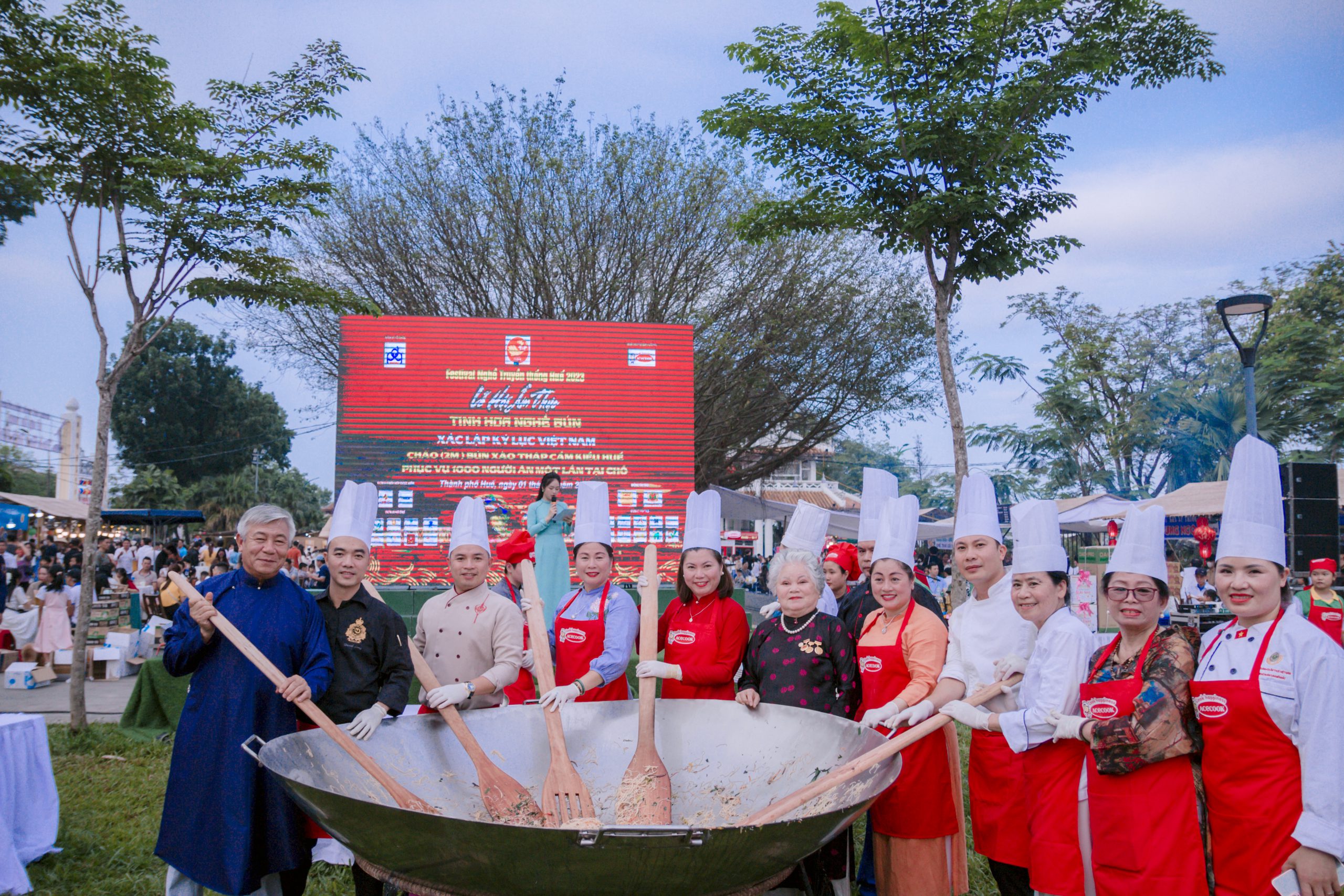 Điểm nhấn của Lễ hội ẩm thực năm nay là sự kiện Xác lập kỉ lục Việt Nam “Chảo bún xào kiểu Huế phục vụ cùng lúc cho nhiều người dùng nhất” do Ban Tổ chức Lễ hội Ẩm thực tại Festival Nghề truyền thống Huế, Công ty Cổ phần Acecook Việt Nam và Nhà nghiên cứu Văn hóa Ẩm thực Lê Tân đồng sở hữu kỉ lục. Với sự góp sức của 170 người, gồm 20 nghệ nhân nổi tiếng đến từ ba miền Bắc – Trung – Nam, 30 đầu bếp chuyên nghiệp và 100 nhân viên phục vụ khách trải nghiệm, chế biến trực tiếp tại chỗ 1.000 đĩa bún xào thập cẩm với nhiều nguồn nguyên liệu thực phẩm: Heo, bò, tôm, nấm, rau củ quả, gia vị địa phương và đặc biệt là sợi bún tươi sấy khô Hằng Nga được sản xuất theo quy trình công nghệ hiện đại. Theo Nhà nghiên cứu Văn hóa Ẩm thực – Kỉ lục gia Lê Tân, “Ẩm thực Việt Nam muốn nâng tầm và phát triển cần phải biết “Tôn vinh Truyền thống – Kiến tạo Tương lai”. Công ty Cổ phần Acecook Việt Nam đã thành công khi áp dụng khoa học công nghệ hiện đại, biến tấu món ăn truyền thống thành món ăn hiện đại để vươn ra Thế giới”.