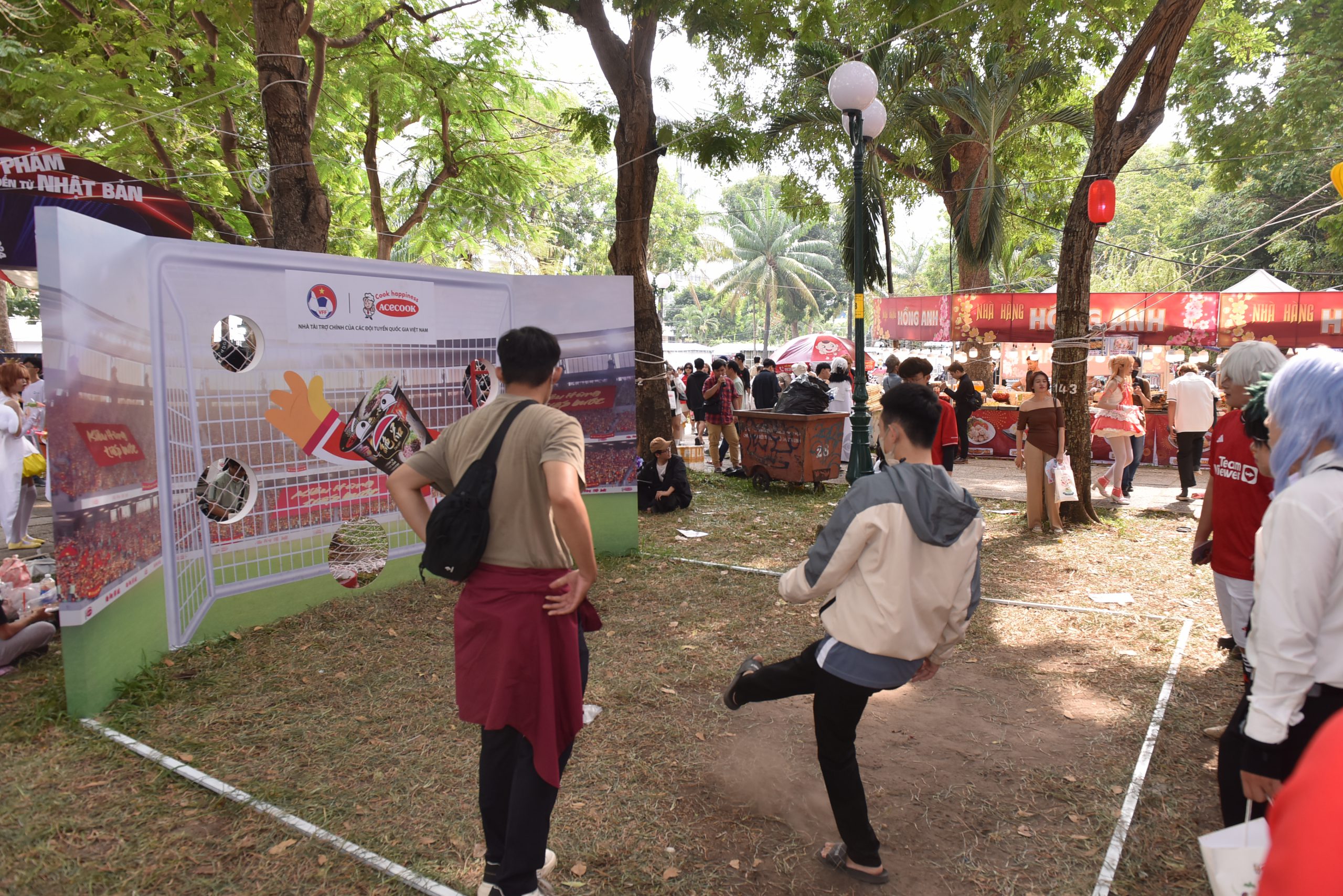 Khu vực này cũng không kém phần sôi động với thử thách gắp mì và trò chơi thử tài bóng đá.