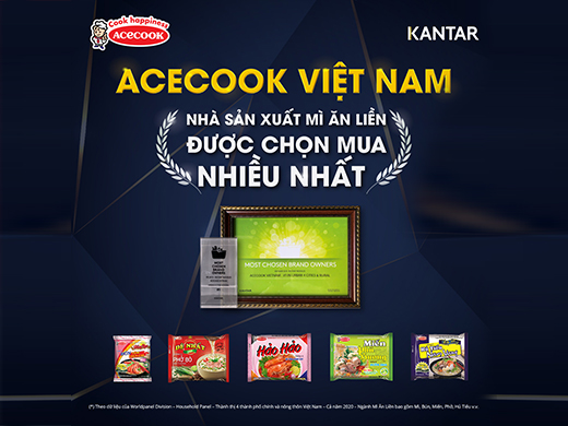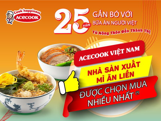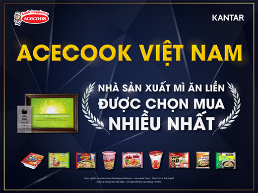 Vừa qua, Acecook Việt Nam đã tiếp tục giữ vững danh hiệu “Nhà sản xuất Mì Ăn Liền được chọn mua nhiều nhất”(*). Cùng với