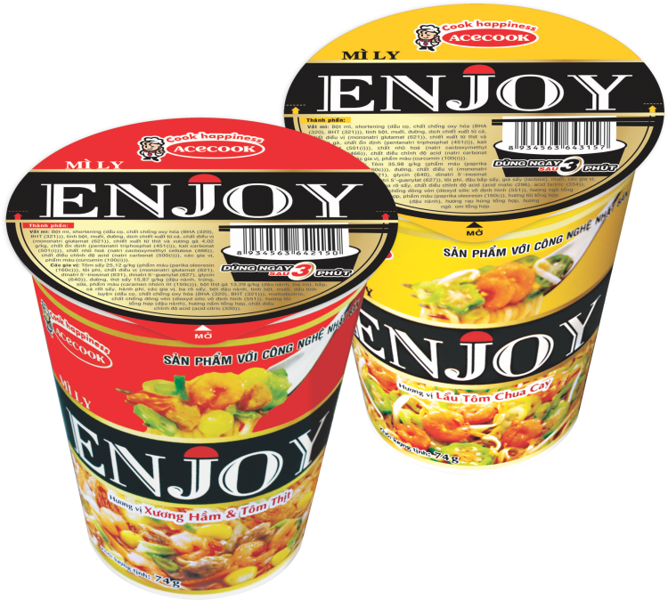 Sản phẩm Mì Ly Enjoy hương vị Lẩu Tôm Chua Cay và Xương Hầm & Tôm Thịt hiện đang được bán rộng rãi trên toàn quốc vớ