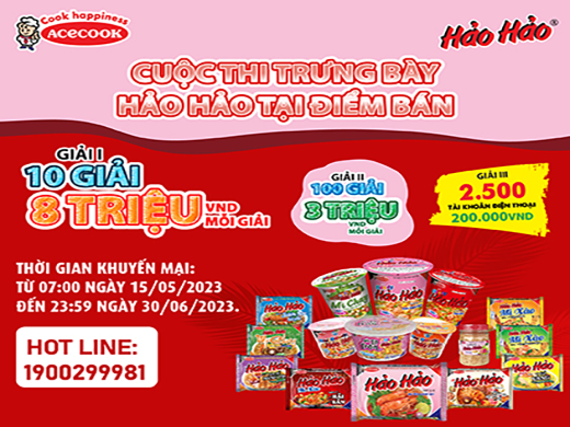 15.05.2023 Sự Kiện CUỘC THI TRƯNG BÀY HẢO HẢO TẠI ĐIỂM BÁNChương trình khuyến mại: CUỘC THI TRƯNG BÀY HẢO HẢO TẠI ĐIỂM BÁN1. Địa bàn (phạm vi) khuyến mại: Toàn quốc.2. Hình thức