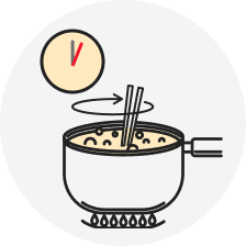 Đun sôi 400ml nước, cho vắt mì vào, đảo đều từ 1 đến 2 phút.
