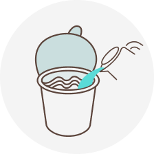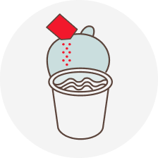 Mở nắp ly đến vạch có mũi tên, cho gói gia vị vào.
