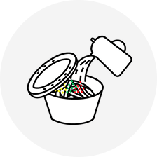 Chế nước sôi đến vạch của tô, đậy chặt nắp nhựa lại. Chờ trong 3 phút.