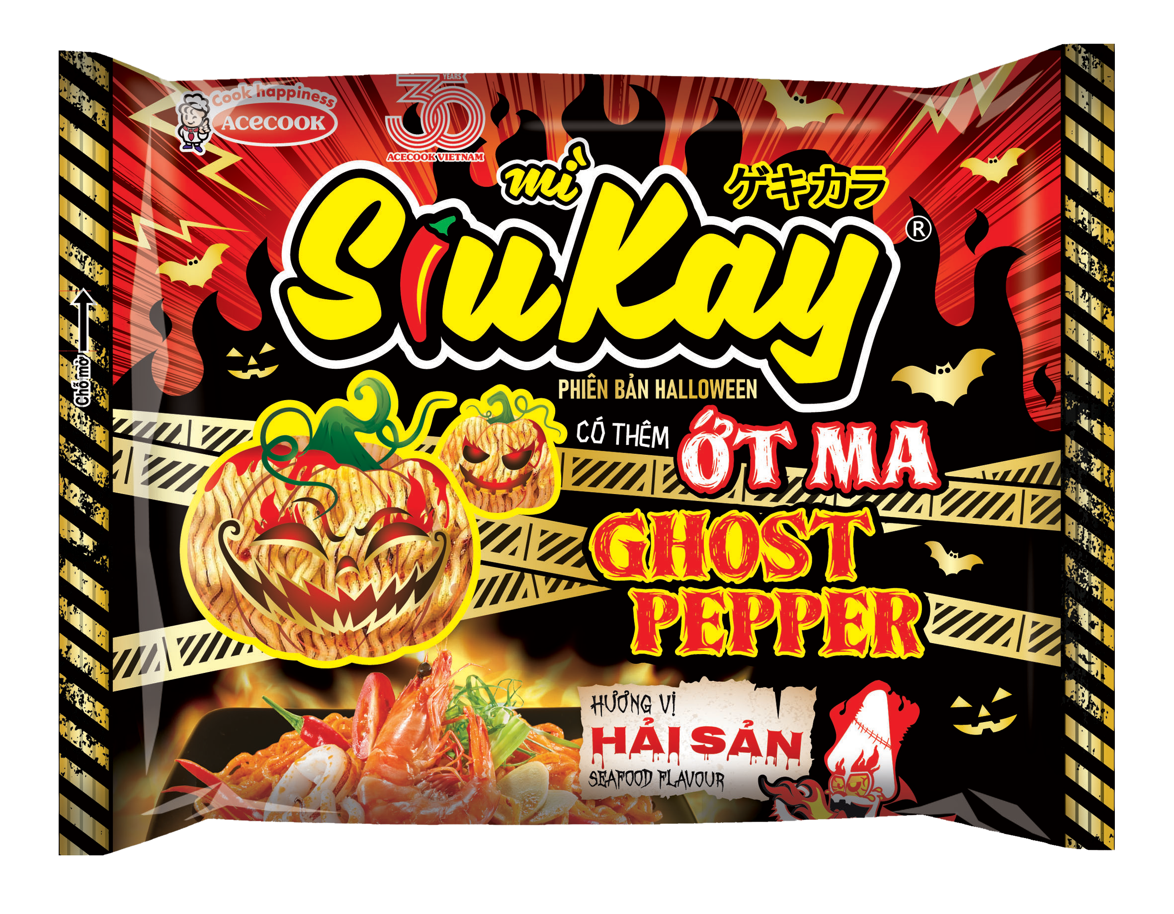 Mì SiuKay phiên bản giới hạn mùa Halloween 2025 mang đến trải nghiệm khác biệt với nước soup đậm đà kết hợp cùng vị cay xé lưỡi từ Ớt Ma – Ghost Pepper trứ danh. Từng gói mì là một thử thách hấp dẫn dành cho các tín đồ đam mê vị cay.
