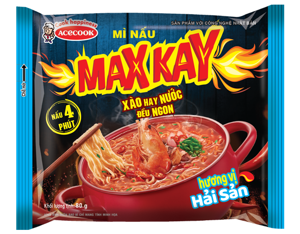Với sợi mì dạng nấu nên to, dai, nước soup vị Kim Chi và vị Hải Sản ngon hòa quyện như một tô mì ngoài tiệm, MAXKAY đáp ứng nhu cầu với những khách hàng thích ăn cay, mang đến vị ngon và sự thỏa mãn khi trải qua các cung bậc cảm súc xuýt xoa khi sử dụng sản phẩm. Bên cạnh đó, Mì cay MAXKAY cùng lượng mì 72g vừa đủ cho 1 người bình thường ăn một mình vẫn vui, ăn cay theo cách riêng của bạn.