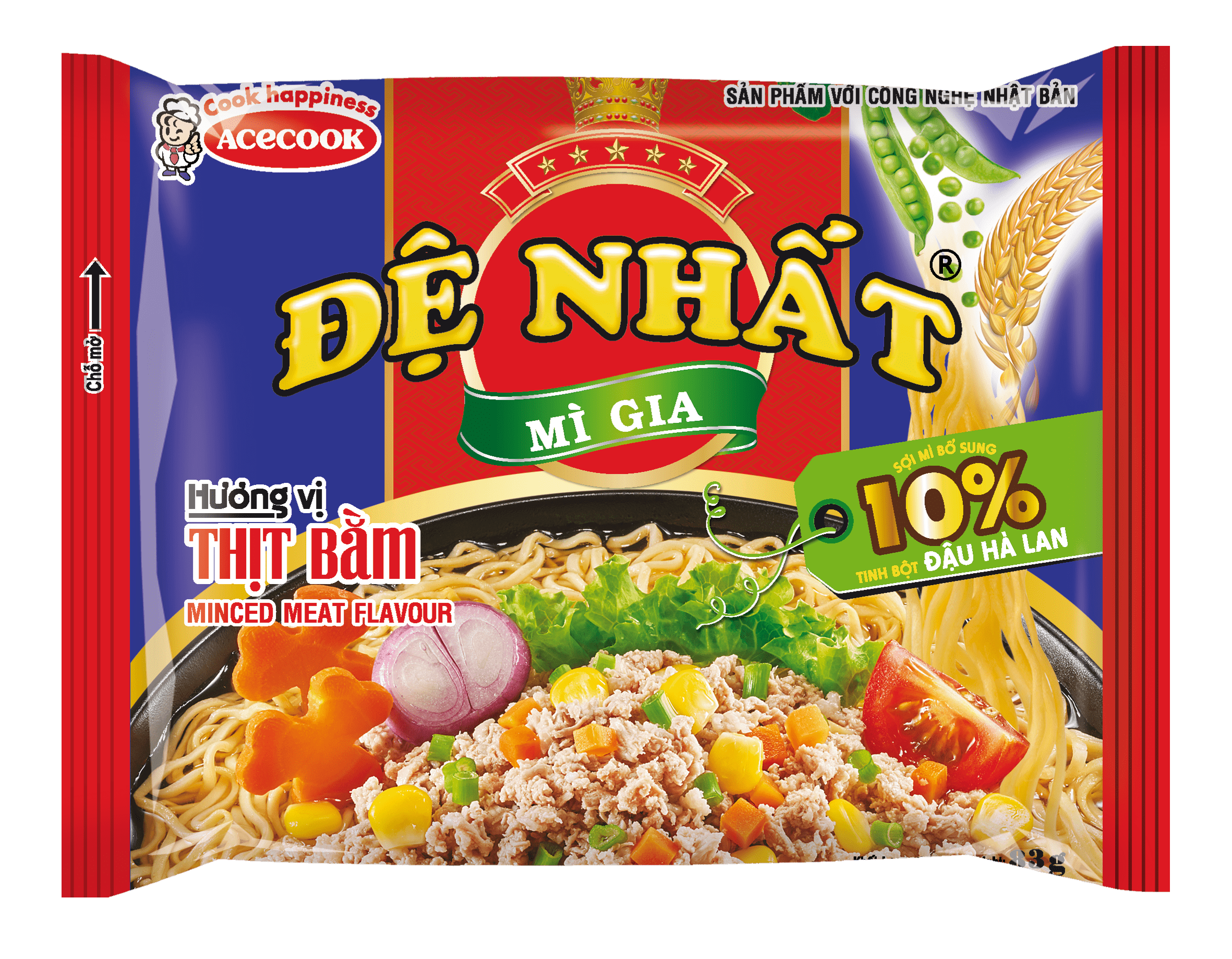 Đậu Hà Lan được biết đến như một loại thực phẩm tốt cho sức khỏe của con người với nhiều Vitamin và khoáng chất. Nay công ty Acecook xin giới thiệu – MÌ ĂN LIỀN ĐỆ NHẤT MÌ GIA mới được sản xuất từ tinh bột ĐẬU HÀ LAN và lúa mì chọn lọc tạo nên những sợi mì giòn – dai – trơn – bóng kết hợp cùng nước súp đậm đã hấp dẫn chắc chắn sẽ thêm vào thực đơn nhà bạn những món ăn ngon mới lạ.