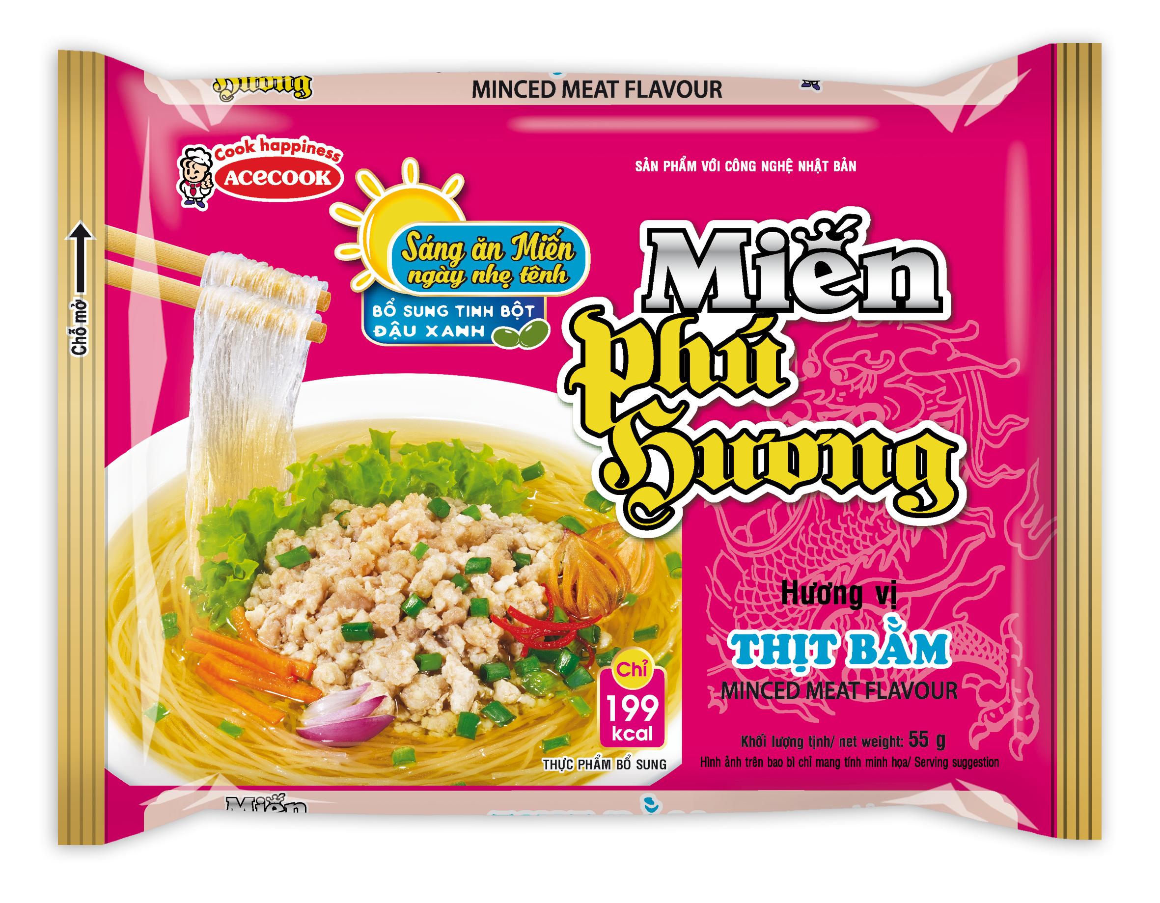 Miến Phú Hương được bổ sung tinh bột đậu xanh giúp sợi miến dai, trơn, kết hợp với nước súp thơm ngon khó cưỡng. Không chỉ thế, sản phẩm được bổ sung thêm vitamin B12 và lượng calo còn 199 (kcal) giúp bạn giữ dáng an toàn, khỏe mạnh mà vẫn hài lòng với chất lượng của sản phẩm. Đây là bí quyết để bạn an tâm về sức khỏe, tự tin về ngoại hình khi đối diện với những người xung quanh.