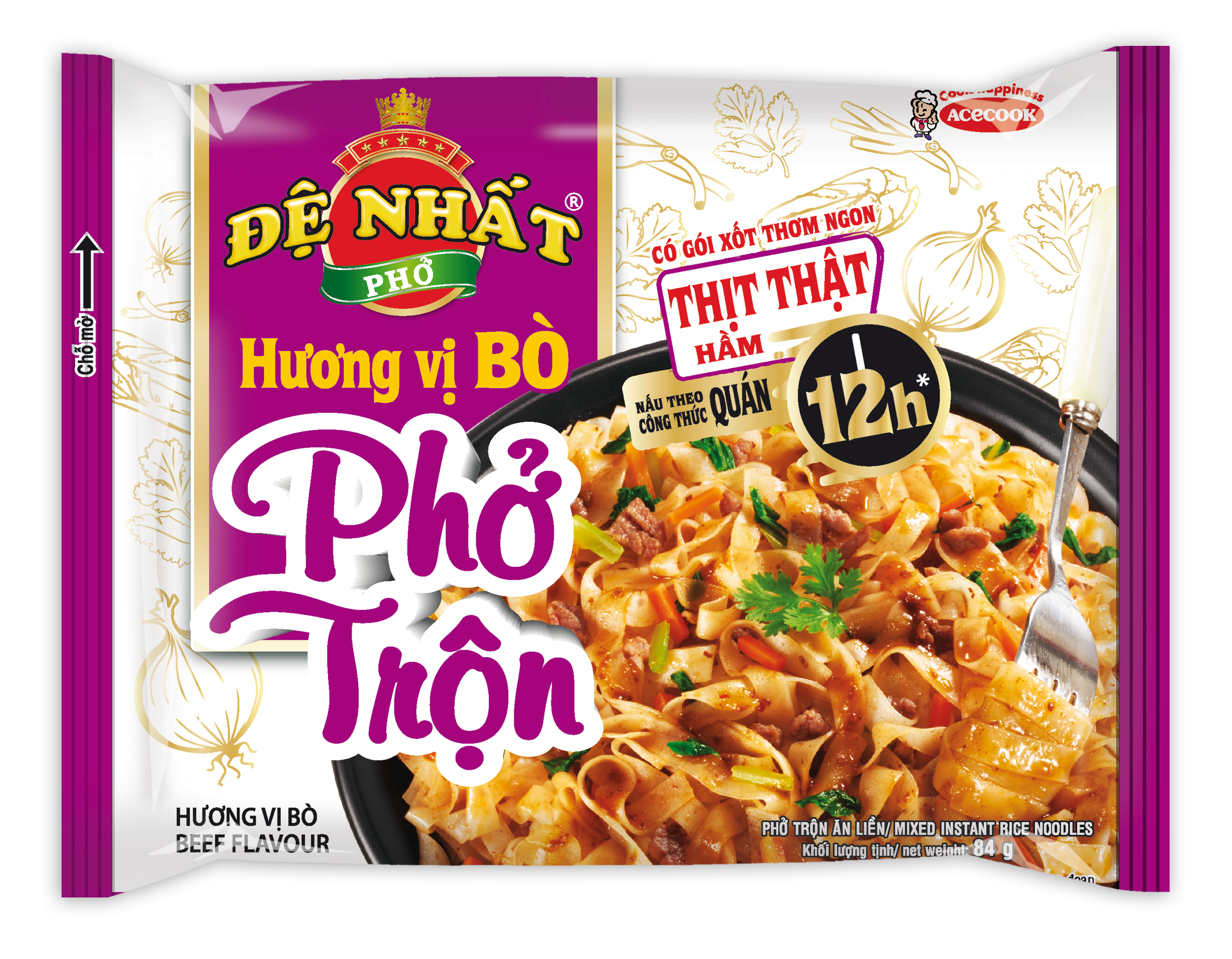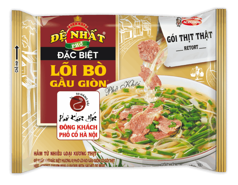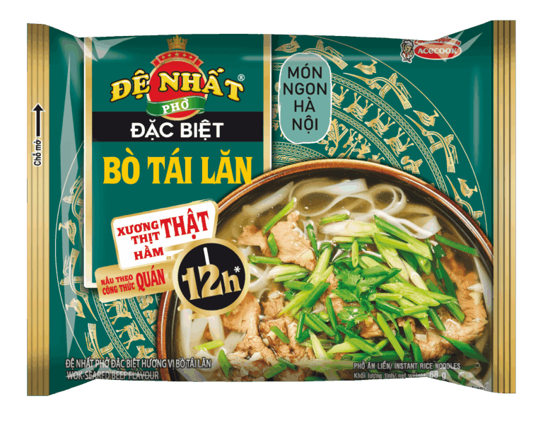 PHỞ TRỘN ĐỆ NHẤT sở hữu sợi phở dai được quyện bởi nước xốt đậm đà, đem đến cho bạn phở trộn ngon hấp dẫn ngay mà không cần vào bếp. Không những thế, PHỞ TRỘN ĐỆ NHẤT còn được bảo chứng chất lượng và an toàn từ thương hiệu phở Đệ Nhất và công ty Acecook đến từ Nhật Bản, bạn sẽ càng an tâm hơn khi thưởng thức phở trộn cùng với người thân.