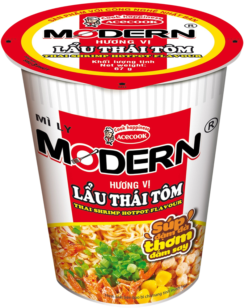 Sản phẩm Modern có sợi mì dai ngon hòa quyện với nước súp đậm đà với mùi thơm cuốn hút và đặc trưng. Modern cung cấp năng lượng cho bạn học tập và làm việc hăng say, để bạn luôn có sự nhiệt huyết theo đuổi đam mê và lý tưởng sống, cùng với dạng ly tiện lợi có thể cầm đi và ăn bất cứ ở đâu bất cứ khi nào. Nay phiên bản Modern mới sử dụng ly giấy tốt hơn cho môi trường nhưng giá thành vẫn giữ nguyên. Sản phẩm vẫn giữ được những nét đặc trưng của ly Modern cũ nhưng đặc sắc và “hiện đại” như Modern, giúp dễ dàng nhận diện sản phẩm renew, vừa góp phần vào bảo vệ môi trường, vừa có thể thưởng thức được hương vị thân quen tại bất cứ khi nào, bất cứ nơi đâu, “súp đậm đà, thơm đắm say”.