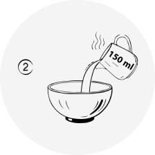Chế nước sôi vào chén khoảng 150 ml và chờ 3 phút.