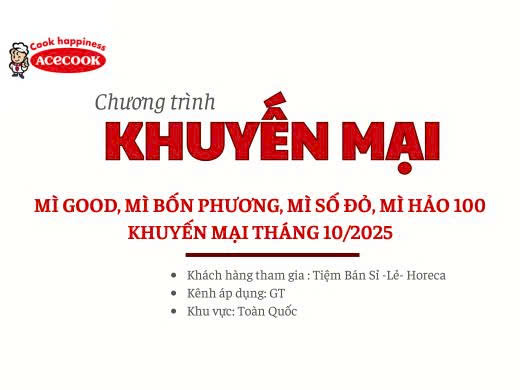CHƯƠNG TRÌNH KHUYẾN MẠI SẢN PHẨM MÌ GOOD, MÌ BỐN PHƯƠNG, MÌ SỐ ĐỎ, MÌ HẢO 100 THÁNG 10/2025