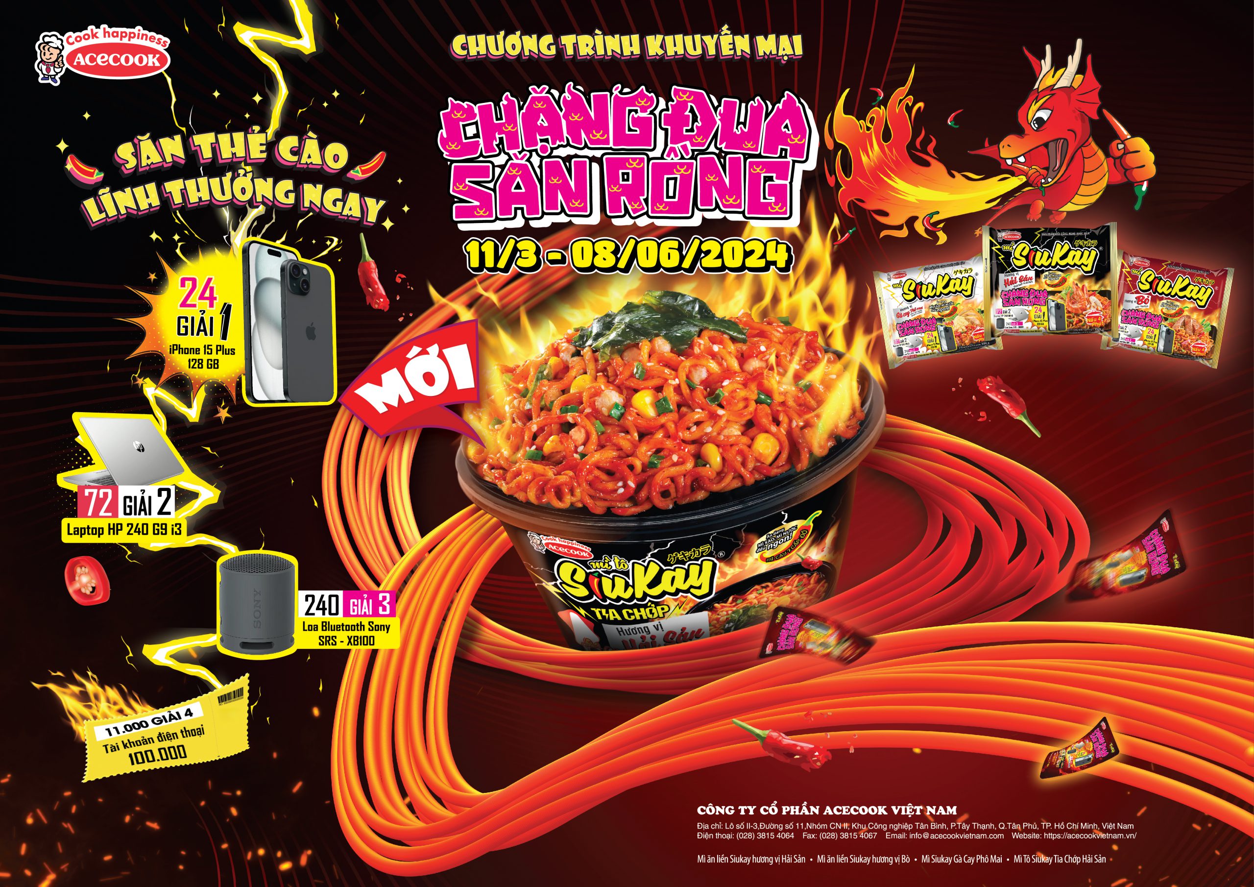 Nhân dịp năm Giáp Thìn 2024, năm của sự may mắn và thịnh vượng, Mì SiuKay tung ra chương trình “Chặng Đua Săn Rồng” diễn ra từ ngày 11/03/2024 đến ngày 08/06/2024 với tổng giá trị giải thưởng lên đến hơn 3,2 TỶ ĐỒNG!