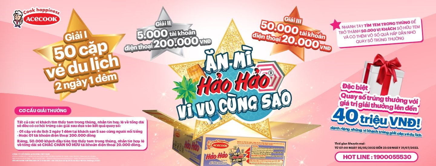 Thông tin chương trình xin xem tại: https://acecookvietnam.vn/chuong-trinh-khuyen-mai-an-mi-hao-hao-vi-vu-cung-sao/
