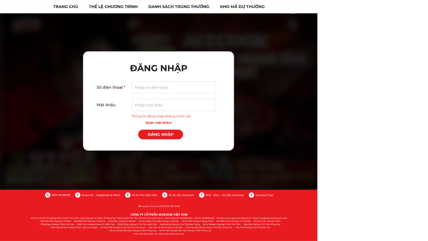 – Công ty Cổ phần Acecook Việt Nam có trách nhiệm công bố kết quả trúng thưởng trên website “https://khuyenmai30nam.acecookvietnam.vn” và Zalo Mini App “Acecook Việt Nam”.