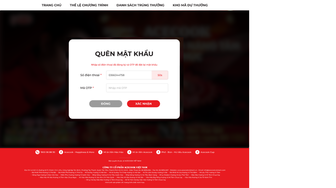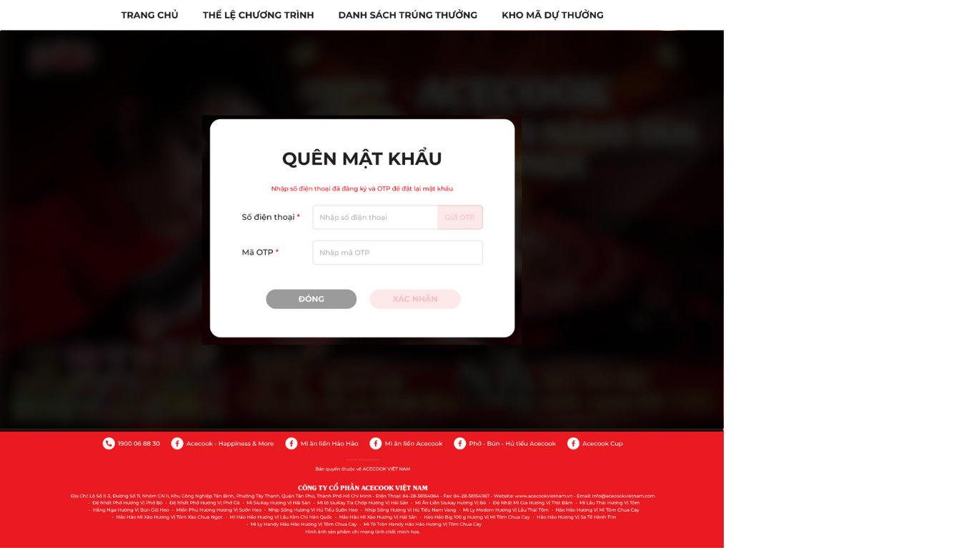 Cách 1: Truy cập Kho Mã Dự Thưởng tại website “https://khuyenmai30nam.acecookvietnam.vn”