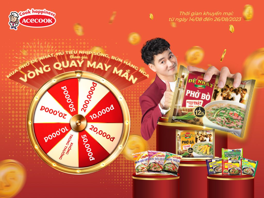 - Công ty Cổ phần Acecook Việt Nam có trách nhiệm thông báo kết quả cho người trúng thưởng và trả thưởng, đồng thời công bố kết quả thực hiện chương trình khuyến mại trên website https://acecookvietnam.vn/truyen-thong-khuyen-mai.